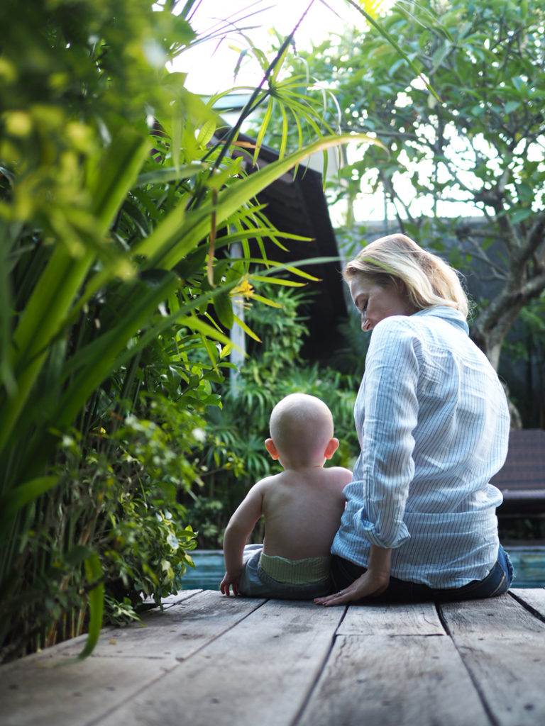 Moni, měli jsme pár favoritů na AirBnb a hodně jsme se dívali na recenze od lidí, kteří už ve vilách byli. Když si zadáš ve výběru celou vilu – bude ti to ukazovat jen ty, které mají soukromý bazén a pronajímáš si opravdu celou vilku, ne jen pokoj. Nakonec jsme měli ve finále asi tři vily a rozhodli se srdcem. K moři to máme celkem daleko – respektive 10 minut taxikem, ale pláž je nic moc. Plná lidí a W je ještě na nějaké plážování malinkej. Je tu přes den dost horko, tak se ho snažíme chránit před sluníčkem a vedrem. Tím, že jsme dál od pláže, máme velikou vilu, která by u pláže stála nesmyslně moc peněz. Záleží, co je pro vás důležité. Já bych asi příště volila dva týdny tady na jihu a dva týdny v Ubud, někde s výhledem do džungle.