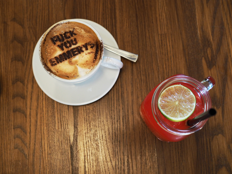 Je to kavárna hned vedle té, ve které jsme snídali a mě by teda vážně zajímal ten celý příběh…