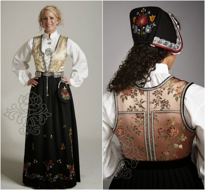 A takhle vypadá bunad,  který je typický pro oblast, ze které pochází John Erik – Rogaland. Taková koupě bunadu není jen tak. Je dost drahý (26.000NOK – cca 83.000CZK + stříbrné ozdoby a doplňky), ušijí vám ho na míru za několik měsíců a vydrží vám celý život.