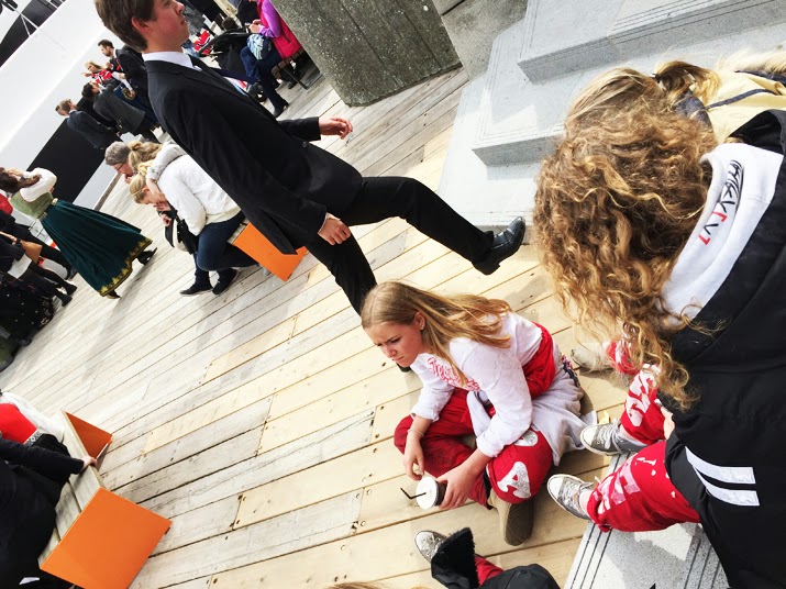 – osmnáctiletí Norové, kteří letos „maturují“ a mají tři týdny party v plném proudu, která vrcholí právě 17. května. Po té je čekají finální zkoušky… Kapitola sama pro sebe… celé Norsko je totiž „terorizované“ mladými Nory, kteří můžou během tří týdnů naprosto všechno. Jezdí svými autobusy s najatými řidiči 24/7 z jedné party na druhou, plní nejzůrnější úkoly, opíjí se do němoty a všichni to tu ackeptují. Vychází to z moc hezké tradice, ale poslední roky se to až nějak moc zvrhlo v alkoholové, nejenom alkoholové, orgie…