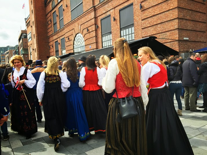 nejlépe bunad – norský tradiční kroj, který se liší barvami, výšivkami, stříbrnými brožemi a doplňky podle toho, z jaké oblasti pocházíte. Norové bunad nosí párkrát do roka – na svatby, na konfirmace, na křtiny a na 17. května. Když nemáte bunad, oblečete nejlepší šaty, co máte a k tomu květiny do vlasů, nebo klobouk