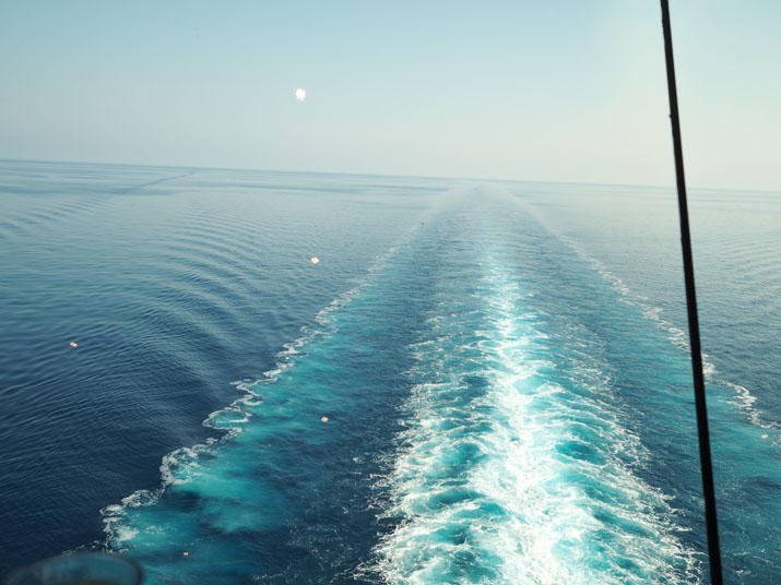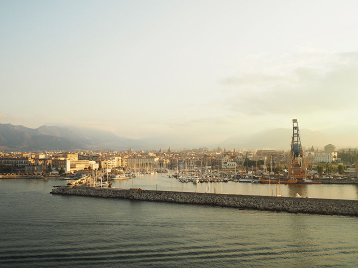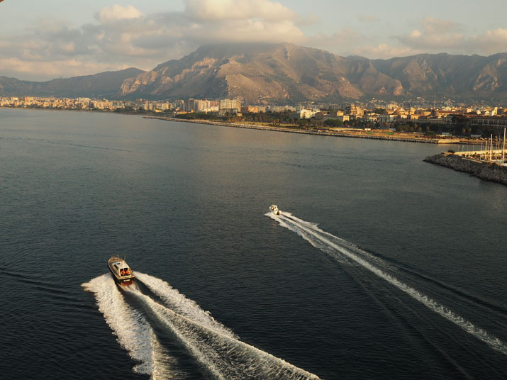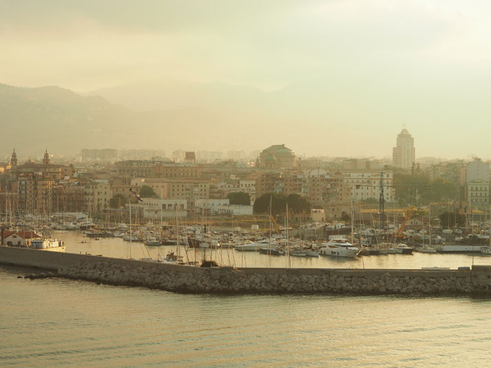 pozorujeme, jak se nám Palermo vzdaluje v mlhavém oparu. Vyplouváme směr