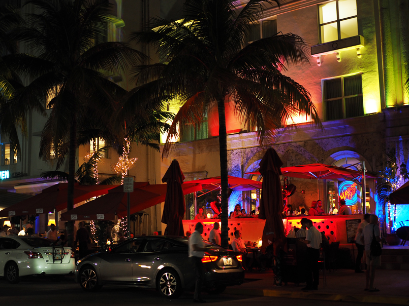 Je nádherný teplý miamský večer a my máme hlad. Projdeme se po kolonádě, která je plná pompézních aut, jako kdyby v každém druhém vozil Edward Vivienn a vplujeme do jedné z restaurací. Objednáváme jeden pořádnej burger s hranolama a salát s tuňákovým steakem. Cpeme se, usrkáváme nekonečný mangový daiquiry a pozorujeme sobotní život. Na Americe mě vždycky ohromně baví to, že to všude vypadá jako z filmu. Dlouhý pláže, po kterých všichni běhají a boří se do písku, kolonáda zaplněná roztodivnými modely, světýlka a noblesní párty všude kolem. Máme ještě pořád časový posun a o půlnoci usínáme oba ve stoje. Svalíme se do obří postele a chrníme až do rána, kdy na nás čeká pořádaná americká snídaně a organizovaný výlet po Miami.